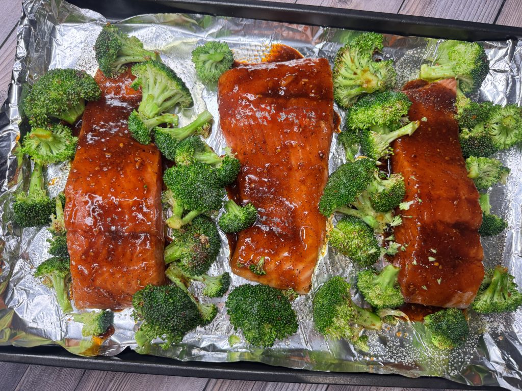 ASIAN GLAZED SALMON AND BROCCOLI SHEET PAN DINNER