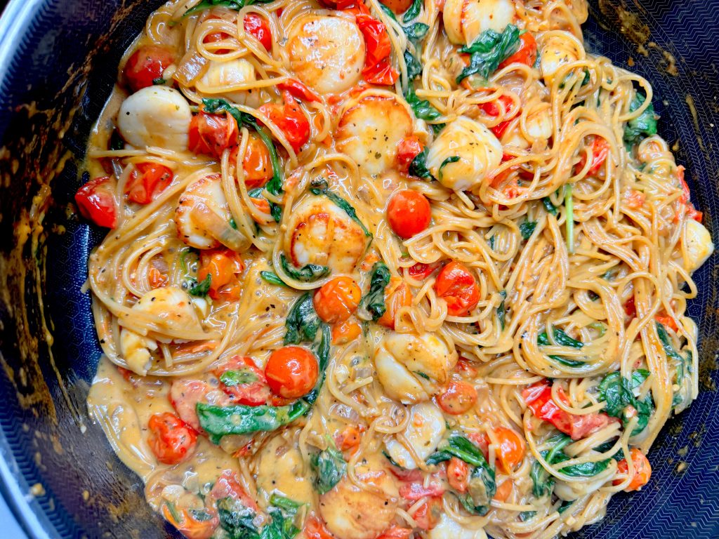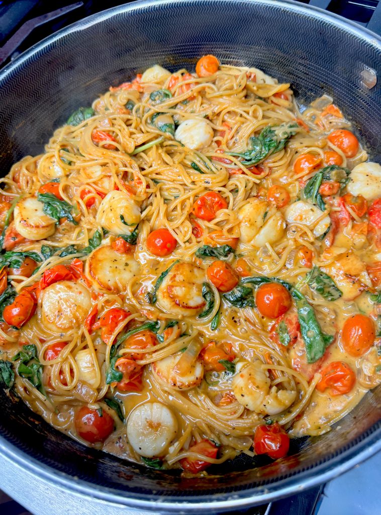 ONE PAN DECADENT SEARED SCALLOP PASTA IN TOMATO CREAM SAUCE