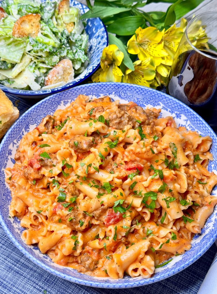 PASTA IN PINK VODKA SAUCE WITH SWEET ITALIAN SAUSAGE AND HOMEMADE RICOTTA