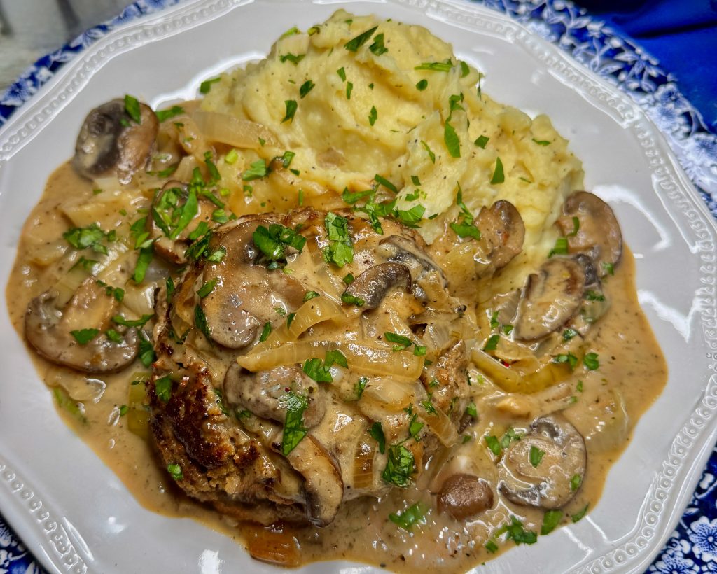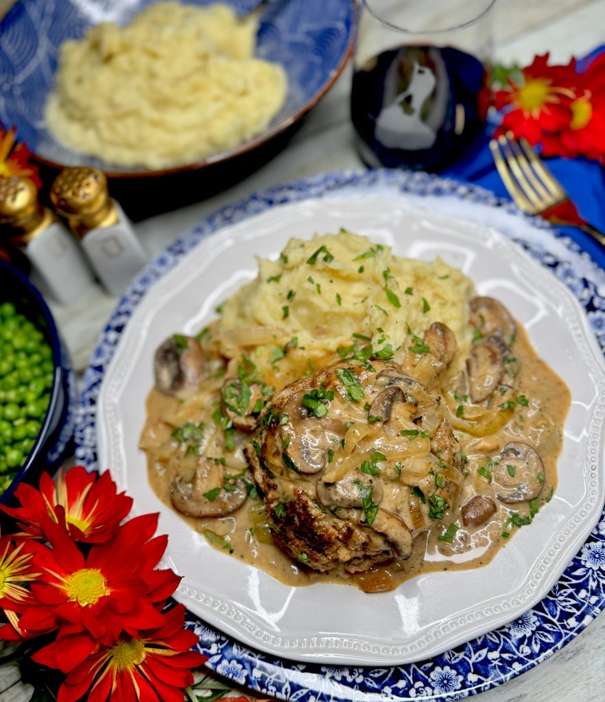 SALISBURY STEAKS WITH CARAMELIZED ONION AND MUSHROOM GRAVY