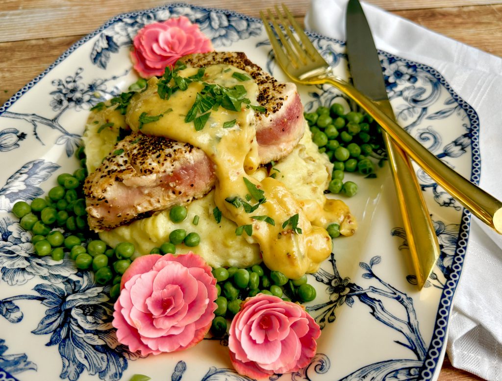 TUNA STEAKS AU POIVRE WITH LEMON MUSTARD CREAM SAUCE