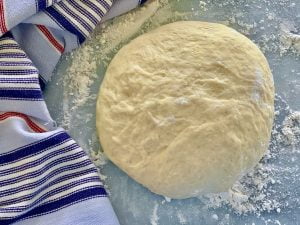 Place dough in a greased bowl and cover with a clean kitchen towel. Let rise in a warm spot for 1 hour until doubled in bulk. Knead dough briefly and divide into 2 equal parts and form balls. Let rest for 30 minutes under a clean kitchen towel. If you are not using both balls, refrigerate each ball in a plastic bag sprayed with cooking spray for up to 5 days.